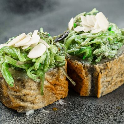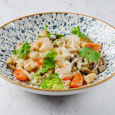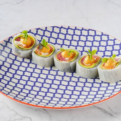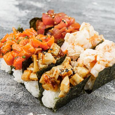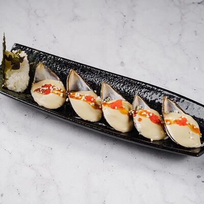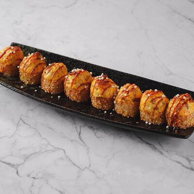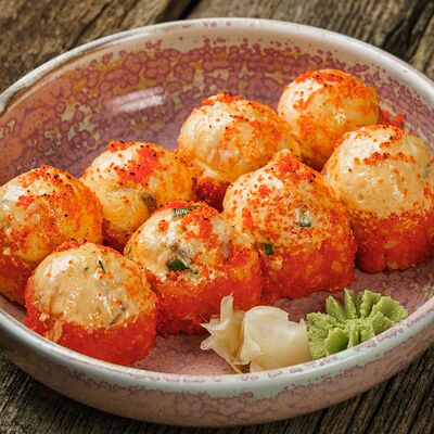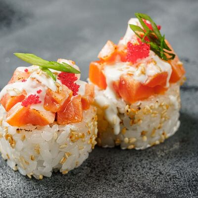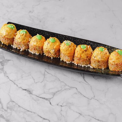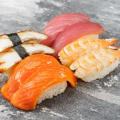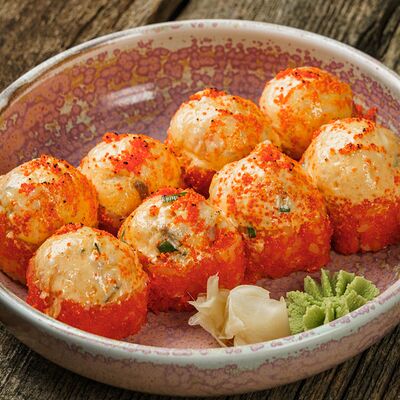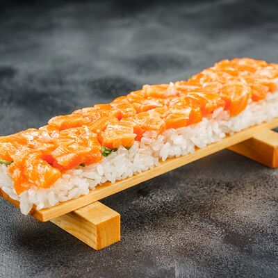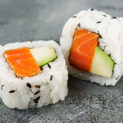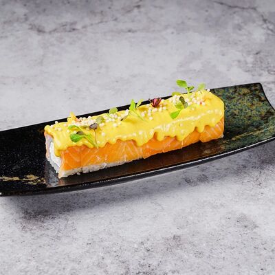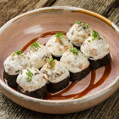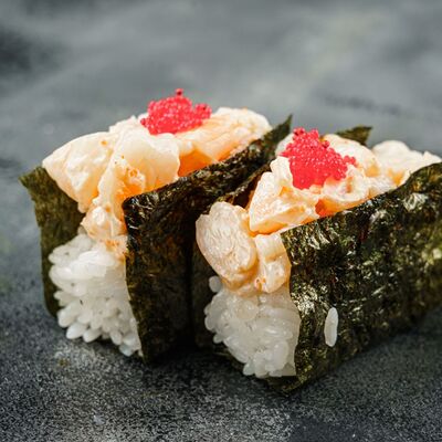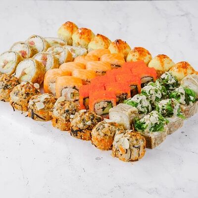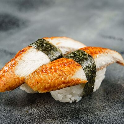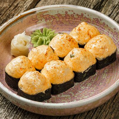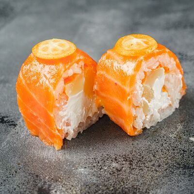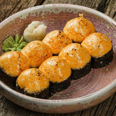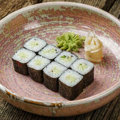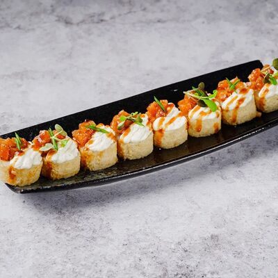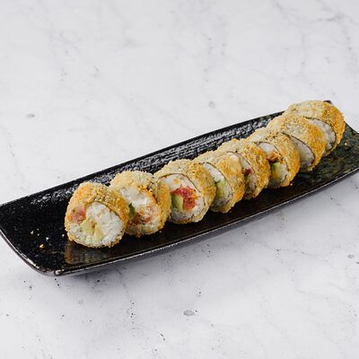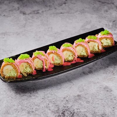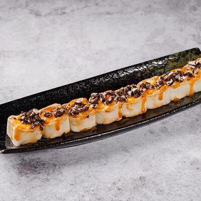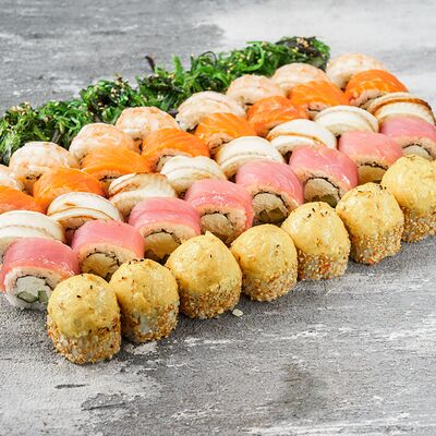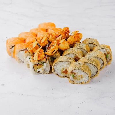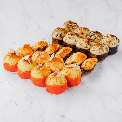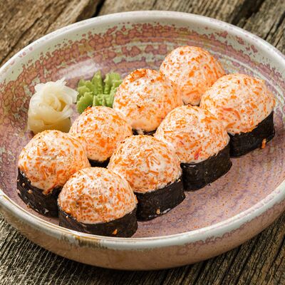 Креветка, сливочный сыр, огурец, омлет (яйца, молоко, соль), соус с угрём, такуан, унаги, зеленый лук, фурикаке, рис, нори Уважаемые клиенты, обращаем ваше внимание на то, что наборы приборов и специй - платные! Один бесплатный набор идёт за каждые 600р. Заказа!