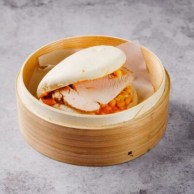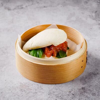 Рис, азиатские маринованные огурцы, креветки, кукуруза, авокадо, бобы эдамаме, черри, шпинат, чука, лайм, соус манго-маракуйя