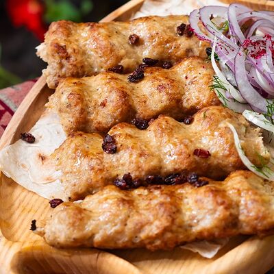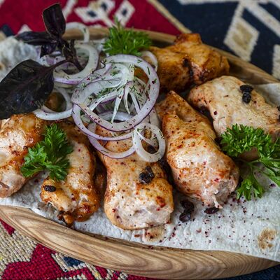 Куриное филе, орех грецкий, чеснок, кориандр, перец кайенский, вода, соль, масло растительное, лук репчатый, кинза