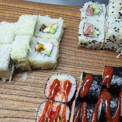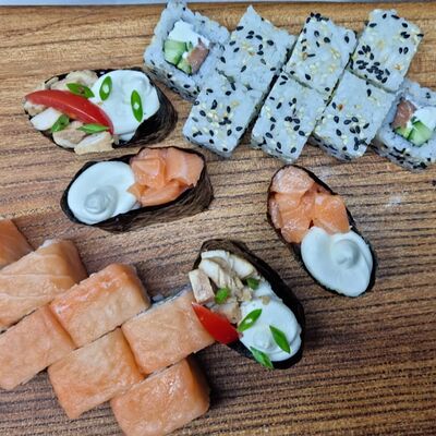 Мини-роллы холодные с креветкой, Мини-роллы холодные с крабом, Мини-роллы холодные с мидиями, Мини-роллы холодные с курицей, Мини-роллы холодные с угрем, Мини-роллы холодные с лососем, Мини-роллы холодные с огурцом, Мини-роллы запеченные с угрем, Мини-роллы запеченные с креветкой, Мини-роллы запеченные с крабом, Мини-роллы запеченные с мидиями, Мини-роллы запеченные с курицей