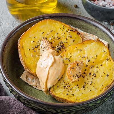 Хрустящие кусочки картофеля, обжаренные во фритюре