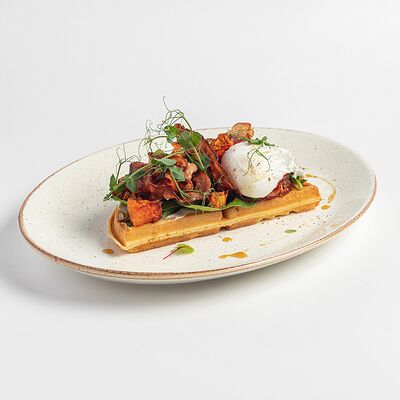 Бельгийская вафля с беконом, яйцом и печеной тыквой доставка