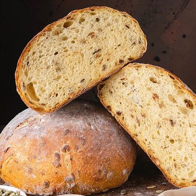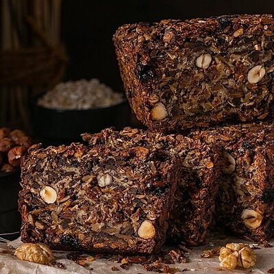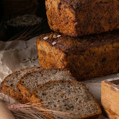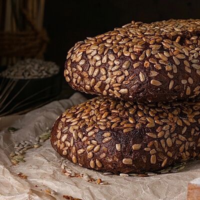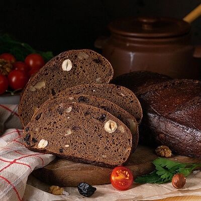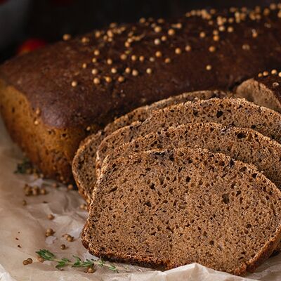 Мука ржаная обдирная, мука ржаная сеяная, семена подсолнечника, солод красный ферментированный, соль, патока карамельная, вода
