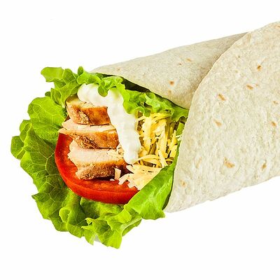 Тортилья, куриная грудка, соус цезарь, салат, сыр пармезан, помидоры