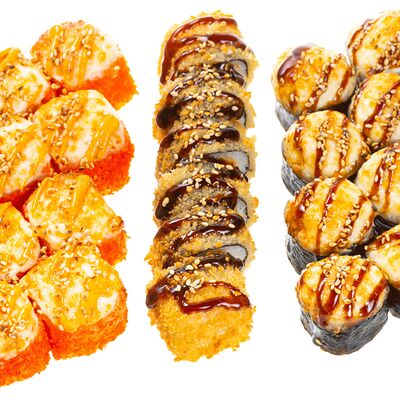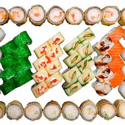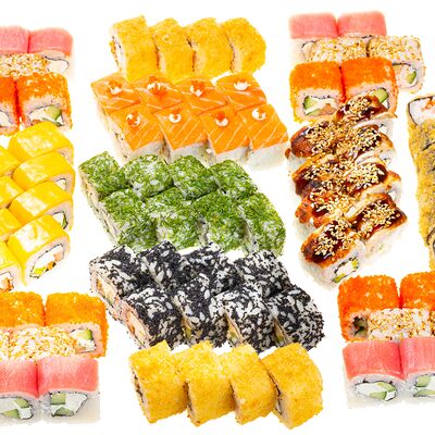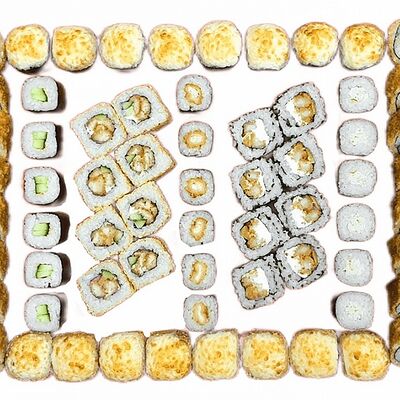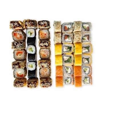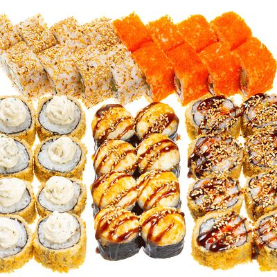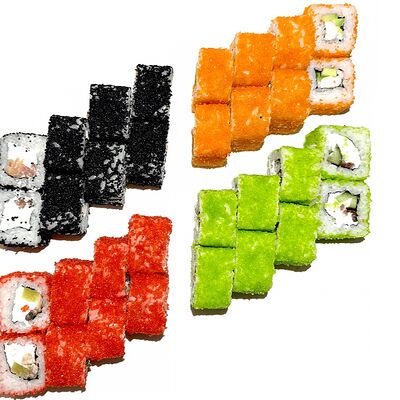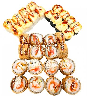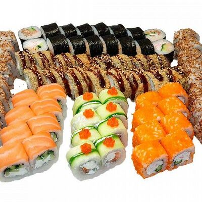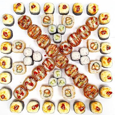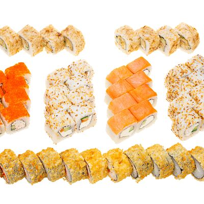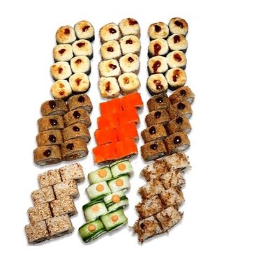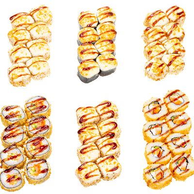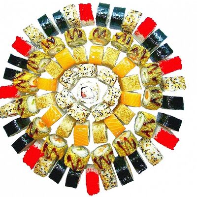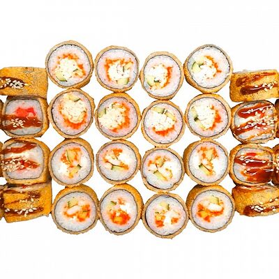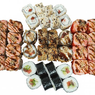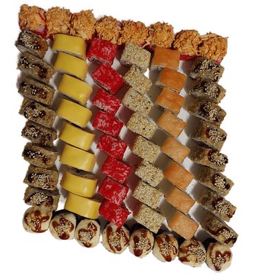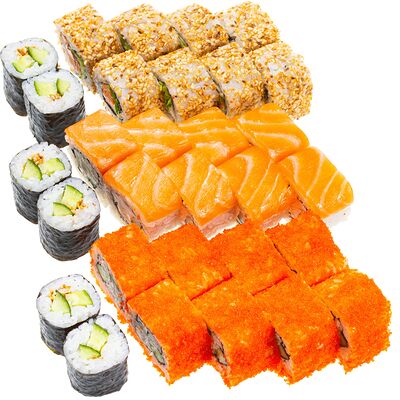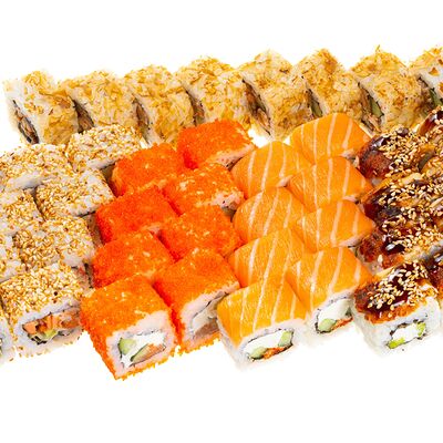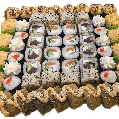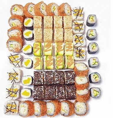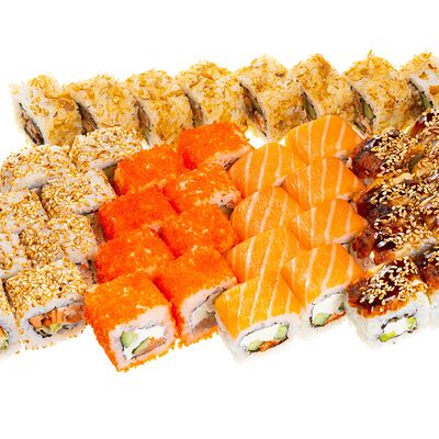 Аляска, Бонито чикен, Кани маки, Кани спайс, Онигири, Ред ролл, Темпура кани, Темпура чикен, Филадельфия (72 шт.)