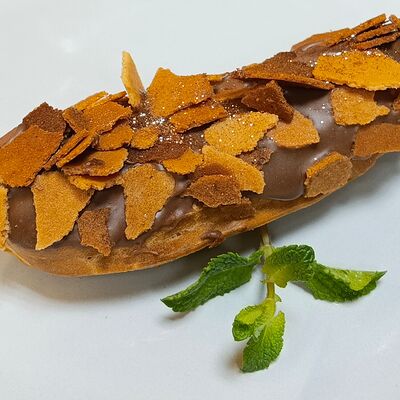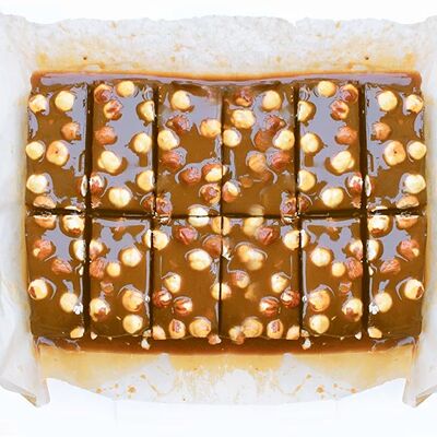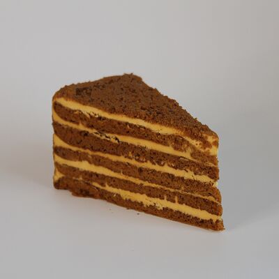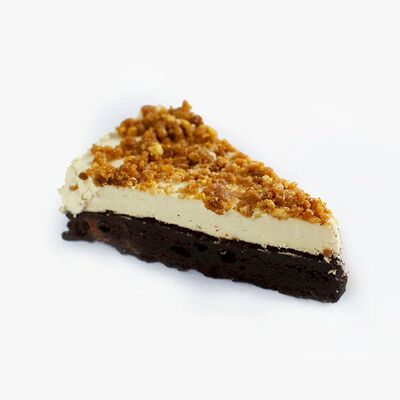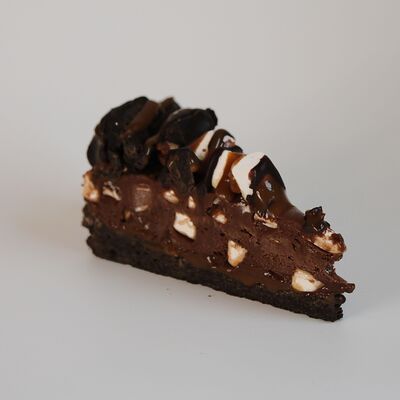 Нежный торт с сердцевиной из фундучного пралине, молочного шоколада, крема из взбитых сливок и хрустящей крошки на тонкой шоколадной подложке. Торт залит толстым шоколадным слоем и украшен дроблёным орехом