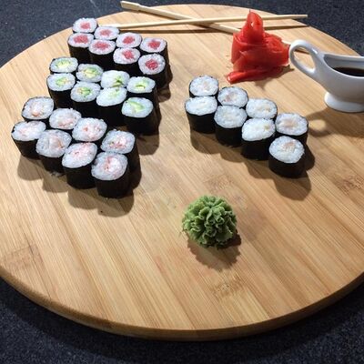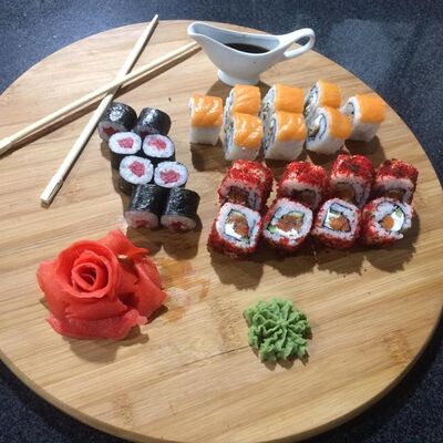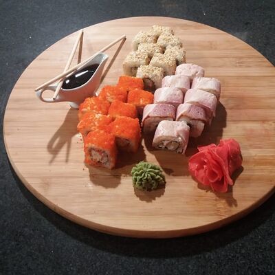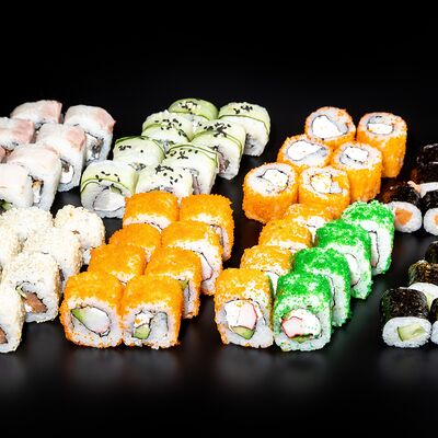 Нори, рис готовий, бекон, сыр филадельфия, огурцы