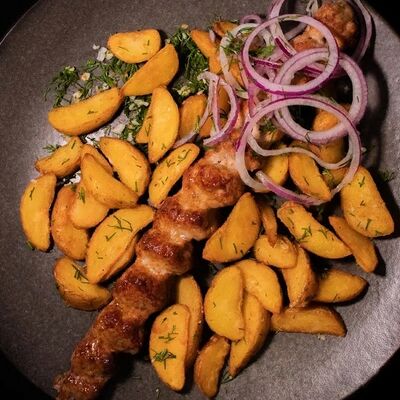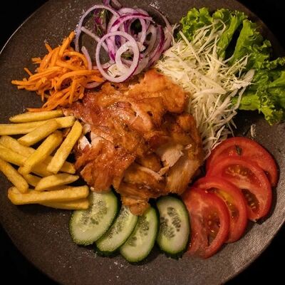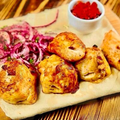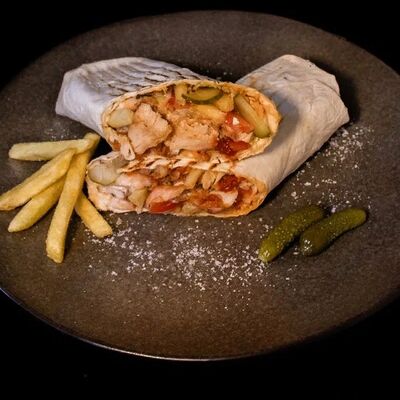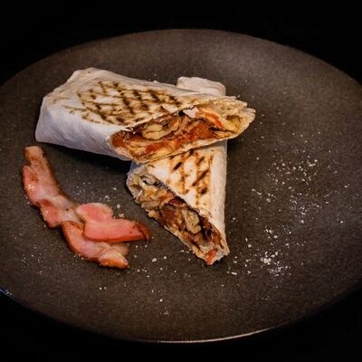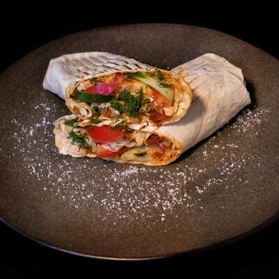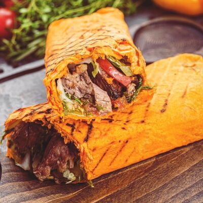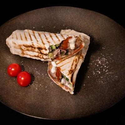 Пшеничный лаваш, томатный соус, красный лук, свежий салат