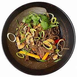 Wok (фунчоза) с овощами -, салат греческий - 330 гр