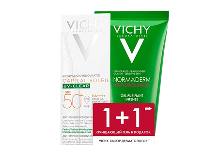 Vichy набор Capital Soleil uv-clear Флюид солнцезащитный для лица SPF 50+ 40 мл + Normaderm phytosolution Гель очищающий для умывания 50 мл доставка