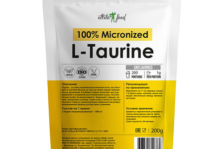 Atletic Food 100% Micronized L-Taurine 1000 mg - 200 грамм - натуральный доставка