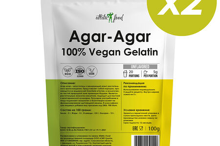Atletic Food Agar-Agar 100% Vegan Gelatin - 2 шт по 100 г доставка