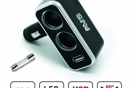 Разветвитель прикуривателя на 2 выхода +USB порт
