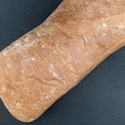 Буханка из пшеничной муки высшего сорта с выраженной корочкой. Структура воздушная и пористая