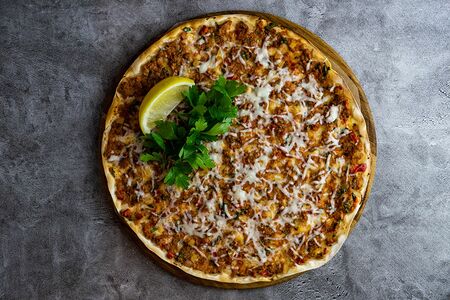 Сочный фарш с болгарским перцем и петрушкой, сыром моцареллой на тонком тесте с зеленью и долькой лимона. Состав: (Тесто: мука пшеничная, яйцо куриное, вода питьевая, соль, фарш (мясо говядины, лук репчатый, помидор,болгарский перец, томатная паста, масло растительное, петрушка, соль, черный перец, паприка молотая сладкая),сыр моцарелла, масло сливочное, лимон, петрушка)