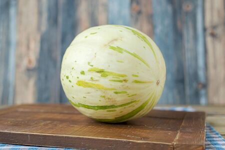 Продается поштучно. Это новый сладкий сорт выращивают исключительно на ферме Agricola Famosa в Бразилии. Дыни Дино весят в среднем от 2800 до 3300 кг , у них сладкая и сочная мякоть с медовым ароматом.