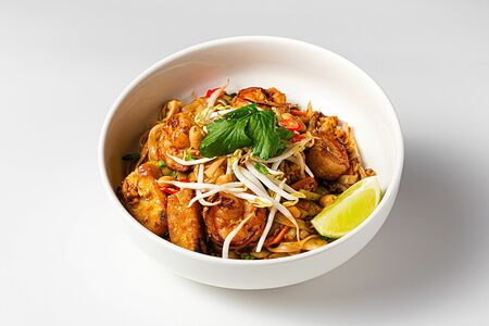 Лапша пад тай с тофу, ростками сои, яйцом, арахисом и креветками доставка