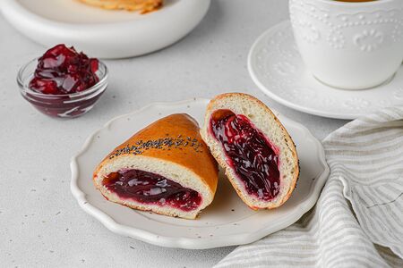 Тесто дрожжевое, конфитюр вишневый