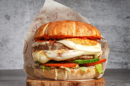 Плескавица с двойной котлетой и жареным сыром Моцарелла