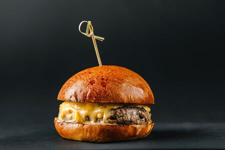Сырный бургер с добавлением соуса чеддер, соуса томатная сальса, сыра чеддер, котлеты из мраморной говядины