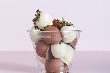 Свежая клубника в молочном шоколаде в стакане