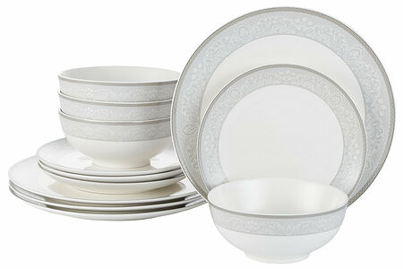 Сервиз столовый Gipfel Annet 42783. В наборе 12 предметов из фарфора: тарелка обеденная 27 см (4 шт.), тарелка закусочная 20 см (4 шт.), салатник 600 мл (4 шт.) Изготовлены из фарфора, легкого и экологически чистого материала.Фарфор безопасен для здоровья, не содержит вредных веществ или токсинов. Вы можете быть уверены в сохранности качества и вкуса блюд, которые подаете в этих тарелках.Сервиз столовый Gipfel Annet - это роскошная классика. На фоне цвета маренго-клер изящный белый узор. Края тарелок украшены посеребренным кантом.Ваш обед станет незабываемым, если Вы используете тарелки из фарфора коллекции Gipfel Annet. Когда вы собираетесь за столом, накрытым посудой из фарфора, Вы создаете особое место для встреч и наслаждения неспешной трапезой. Фарфоровая посуда придаст вашему столу изысканность и элегантность.При сервировке сочетаются с другой посудой коллекции Gipfel Annet.Сервиз столовый Gipfel Annet 42783 упакован в фирменную коробку.РЕКОМЕНДАЦИИ ПО ИСПОЛЬЗОВАНИЮ И УХОДУ:Беречь от ударов и падений.Не подвергать перепадам температуры.Не нагревать в микроволновой печи, на конфорках плиты или открытом пламени.Не использовать абразивные средства или металлические мочалки.Не мыть в посудомоечной машине.Для мытья использовать жидкие моющие средства и мягкую губку.