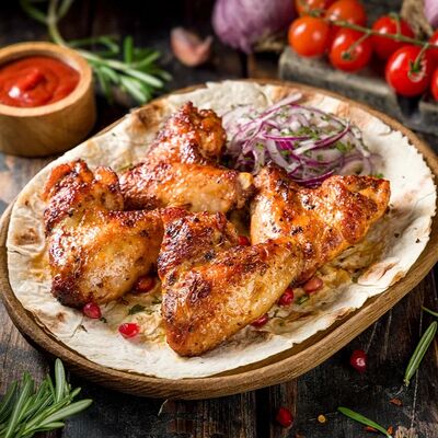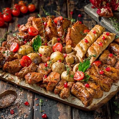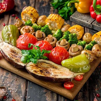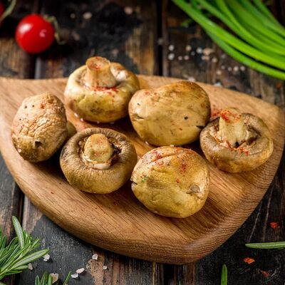 Шампиньоны, жаренные на мангале, сливочном соусе