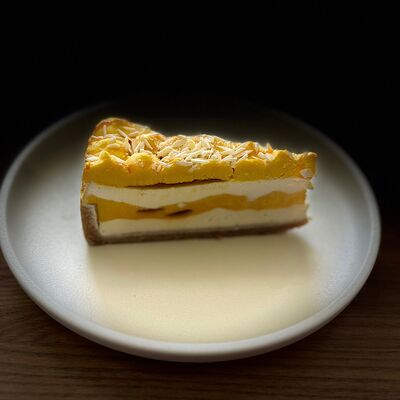 Сыр творожный, меланж пастеризованный, маргарин, сахар, пюре из маракуйи, мука овсяная, пюре из манго, сахарная пудра, мука пшеничная высшего сорта