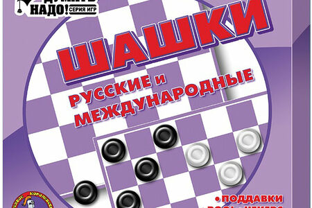 Настольная игра Шашки русские и международные малые. Все виды игры в шашки русские, международные, бразильские, итальянские шашки, поддавки, чекерс, pool. Шашки логическая игра для двух игроков, заключающаяся в передвижении определенным образом фишек-шашек по клеткам шашечной доски. Во время партии каждому игроку принадлежат шашки одного цвета: темного или светлого. Цель игры взять все шашки соперника или лишить их возможности хода (запереть). Жесткое двустороннее поле 21 19 см. С одной стороны 64 клетки, с другой 100 клеток. Шашки пластмассовые двух цветов. Правила игры в шашки описаны на коробке на обратной стороне. Внимание! Цвет шашек может отличаться от изображенного на упаковке. Комплектация: жесткое двустороннее поле 1 штука; шашки пластмассовые двух цветов 4