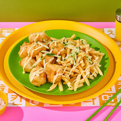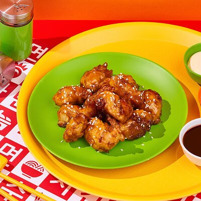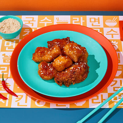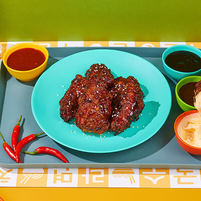 Наше куриное филе и крылья в хрустящей панировке в фирменном соусе korean chick на выбор
