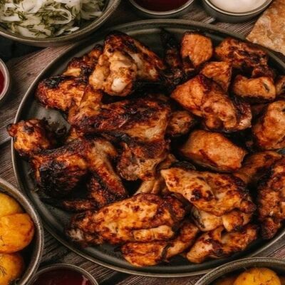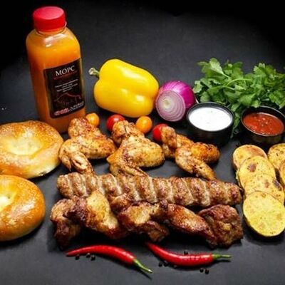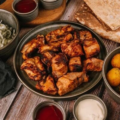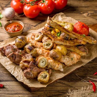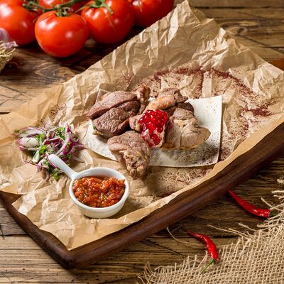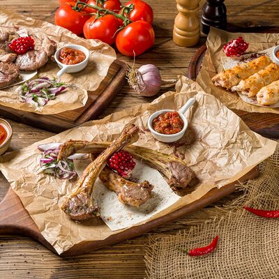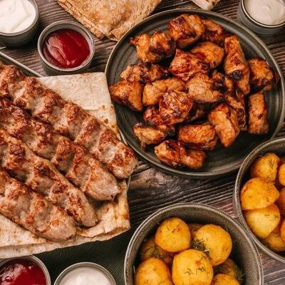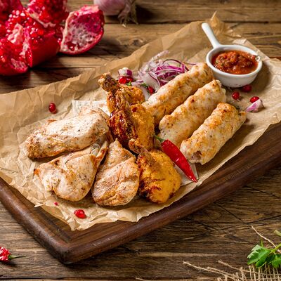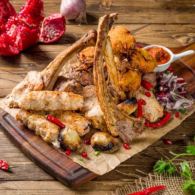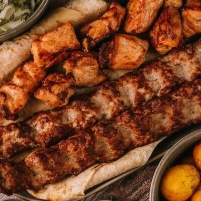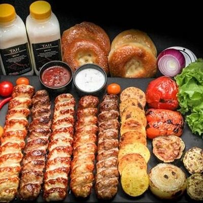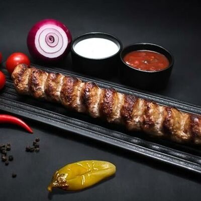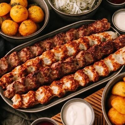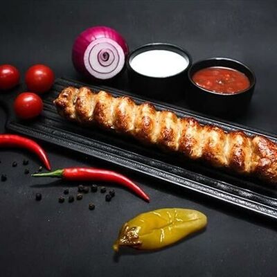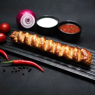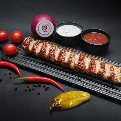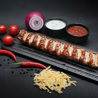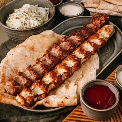 Фарш для люля-кебаба готовится из телятины с добавлением cвинoго сала, лука, тёртого сыра, соли и чёрного перца. Обжаривается на берёзовых углях до готовности и подаётся с кусочком лаваша и маринованным луком с зеленью