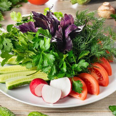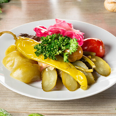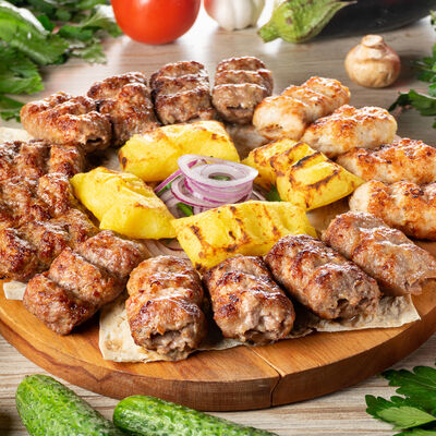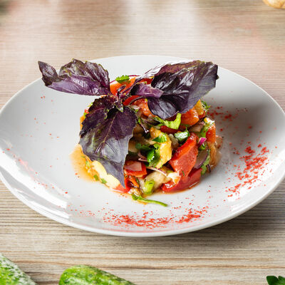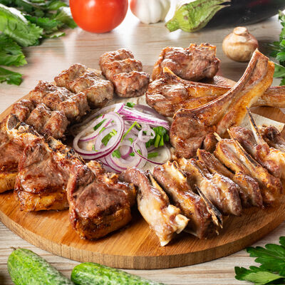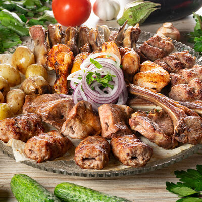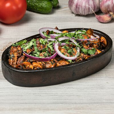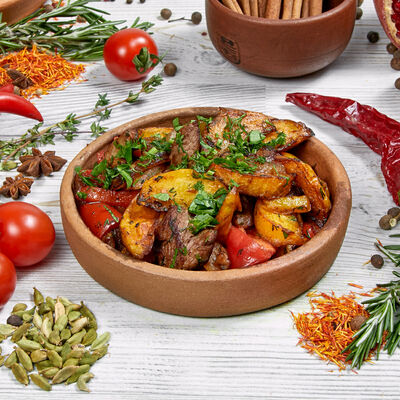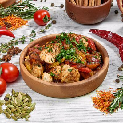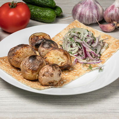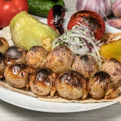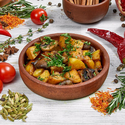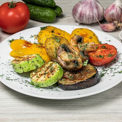 Картофель, шампиньоны, перец сладкий, помидор, баклажан, кабачок