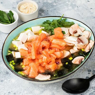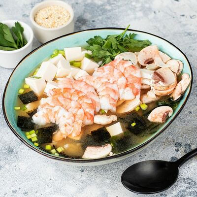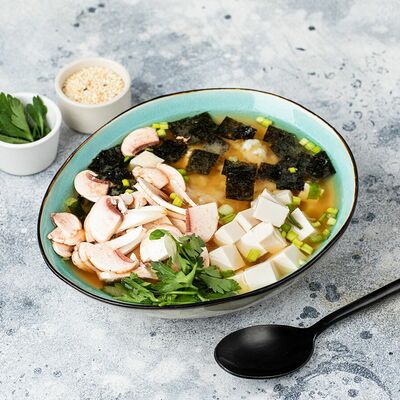Бульон мисо, сыр Тофу, водоросли, грибы Шампиньоны