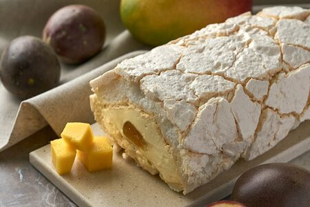 Рулет из воздушного, лёгкого, хрустящего безе с прослойкой из нежного крема на основе манго и маракуйи. Остаточный срок годности не менее 2 суток, ТМ Народный Кондитер