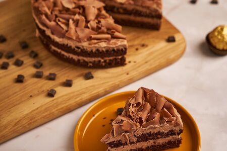 Паровой шоколадный бисквит, мусс на основе молочного шоколада с добавлением молочных сливок. Сверху торт украшен стружкой из бельгийского шоколада. Остаточный срок годности не менее 2 суток. Приборы не предоставляются
