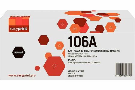 Картридж EasyPrint LH-W1106A (W1106A) для HP Laser 107a/107r/107w/MFP135a/135r/135w/137fnw (1000 стр.) черный, с чипом доставка