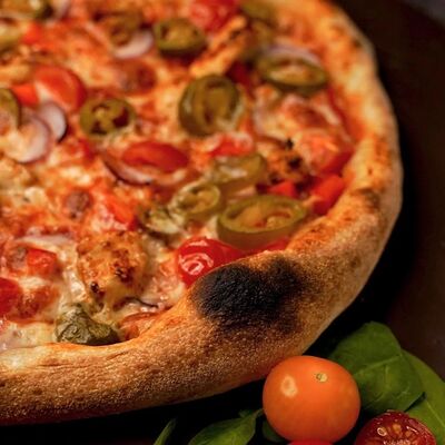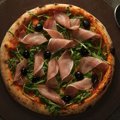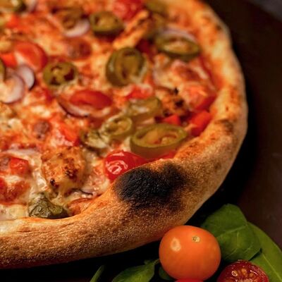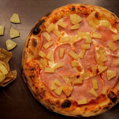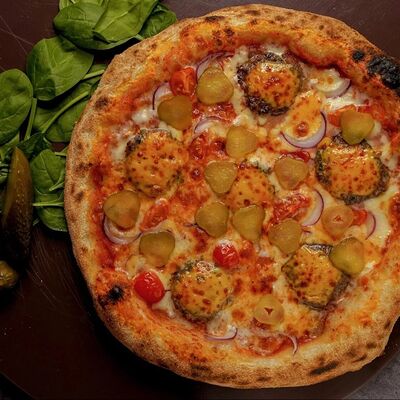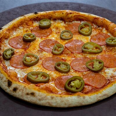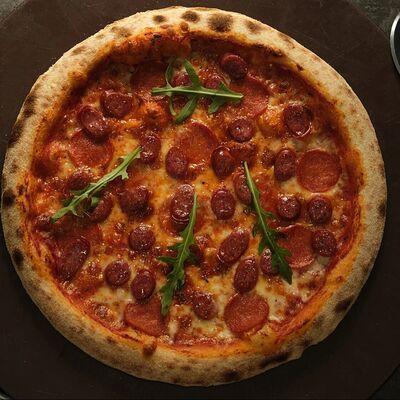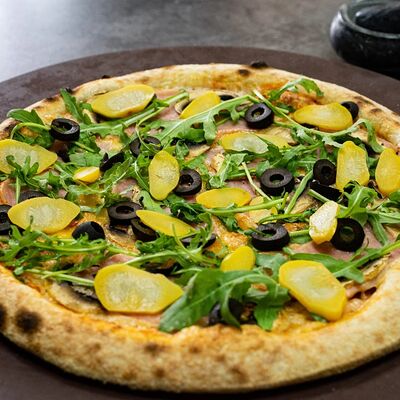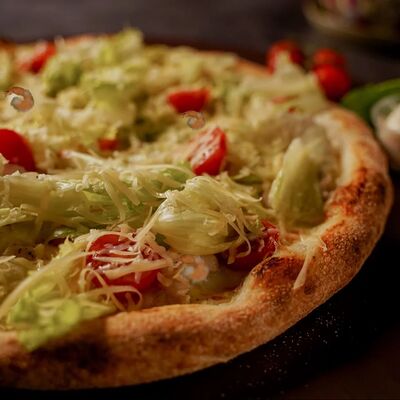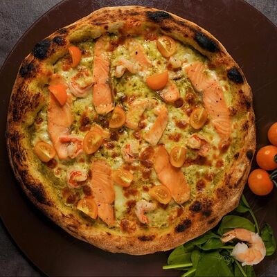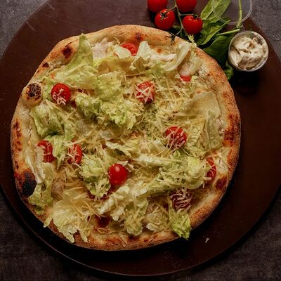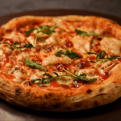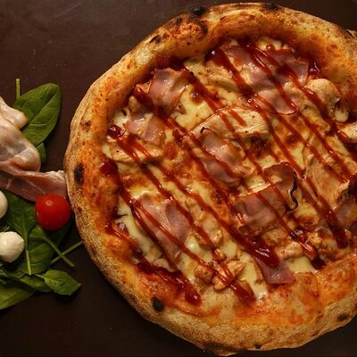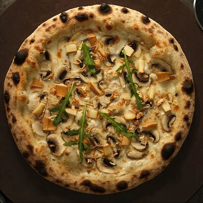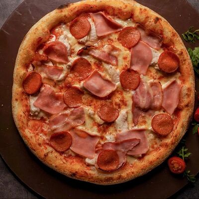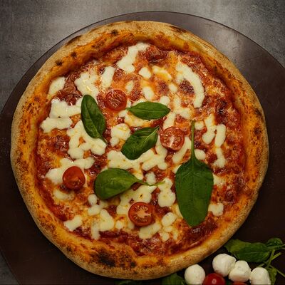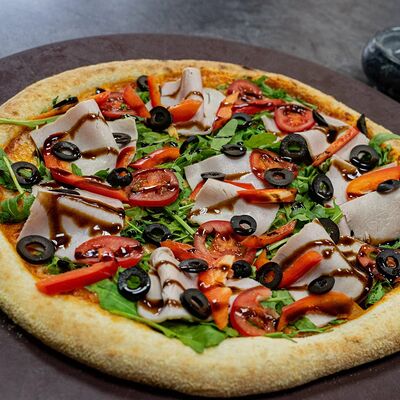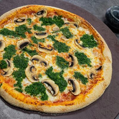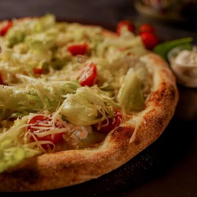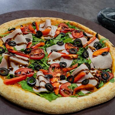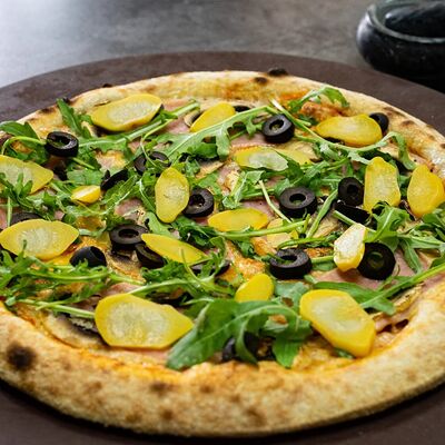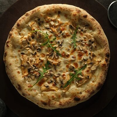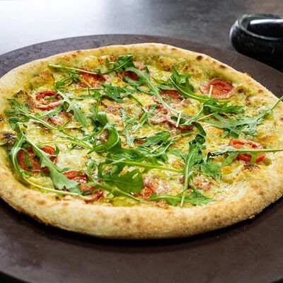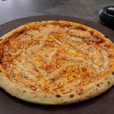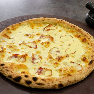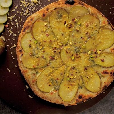 Сливочный соус, сыр моцарелла, сыр горгонзола, груша, кедровые орехи, мед, тесто (30 см)