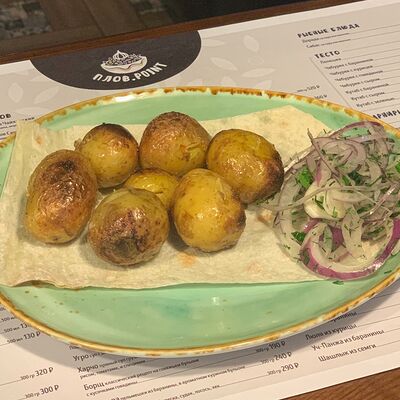 Телятина, картофель, лук репчатый, зелень