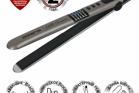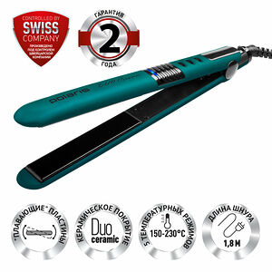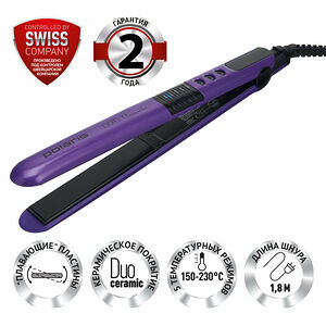 Технология DuoCeramic защищает и сохраняет здоровый вид волос, обеспечивает легкое скольжение за счет керамического покрытия с двумя дополнительными слоями. Первый слой - для прочности и долговечности покрытия. Второй - для легкого скольжения и деликатного равномерного нагрева. 2 в 1 для выпрямления и подкручивания волос. Благоприятно для окрашенных волос. LED терморегулятор, 5 режимов: 150-170-190-210-230 градусов. Плавающие полотна для лучшего прижима. Быстрый и стабильный нагревПокрытие корпуса Soft Touch. Шарнирное вращение шнура на 360 градусов. Удобная петля для подвешивания. Фиксация пластин в закрытом положении.