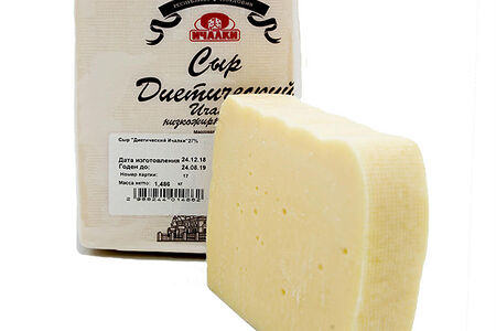 Диетический – уникальный твёрдый сыр жирностью всего 27%. Кроме того, что содержание природного белка и кальция в продукте высоко, производителю удалось достичь оптимальной калорийности, чтобы удовлетворить потребности покупателей, соблюдающих правила правильного питания.