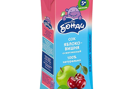 Сок Бегемотик Бонди Яблоко-Вишня без сахара 0.2л доставка