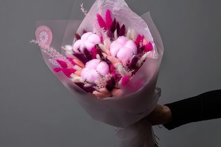 Букет цветов "Сухоцвет хлопок розовый" Простоцветы доставка