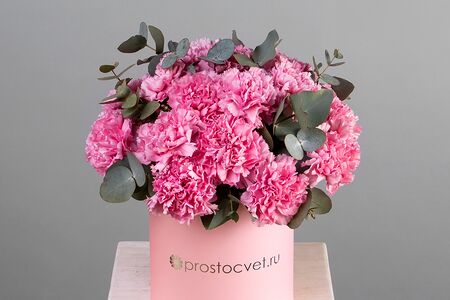 Букет цветов ""Шляпная коробка Розовые Диантусы"" доставка