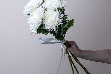 Букет цветов из Хризантема "Антонов" 5шт (70см) под ленту доставка