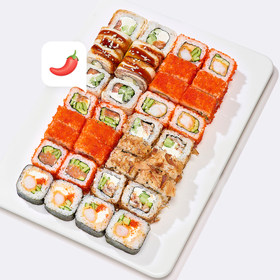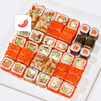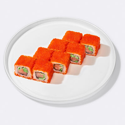 Сервируется с васаби, имбирём и соевым соусом.