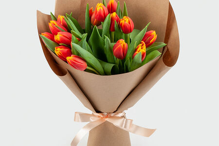 Букет 15 тюльпанов в крафте, оранжевые