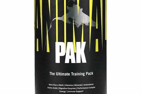 ANIMAL PAK ОТ UNIVERSAL NUTRITION НОВАЯ ФОРМУЛА ПО 8 ТАБЛЕТОК!Universal Animal Pak – это легендарная спортивная добавка, которая уже более 30 лет остается несменным лидером продаж на рынке спортивного питания. Это многофункциональная добавка, представляющая собой, в первую очередь, мощный комплекс витаминов и минералов, обогащенный питательными веществами, необходимыми для увеличения спортивных показателей и поддержи организма во время высокоинтенсивных физических нагрузок.Чтобы полностью понимать принцип работы Animal Pak Universal, следует обратить внимание на его уникальный состав.Минералы и витамины в комплексе Animal Pak подобраны таким образом, чтобы обеспечить высокие потребности активных людей и спортсменов. В составе преобладает повышенное содержание витаминов группы В и это не спроста. Именно данные витамины являются главными участниками метаболизма белков в организме, снижают уровень катаболизма и способствуют увеличнию энергетического потенциала. Помимо этого, состав Animal Pak обогащен повышенным содержанием витаминов С и Е, которые необходимы для поддержания иммунитета даже при высоких физических нагрузках. Цинк, входящий в состав, принимает участие в секреции тестостерона, кальций защищает опорно-двигательный аппарат от травм.Аминокислотный комплекс необходим для активного мышечного роста и формирования новых мышечных волокон. Состав представлен как заменимыми, так и незаменимыми аминокислотами.Комплекс антиоксидантов также необходим организму спортсмена, как и витамины или аминокислоты. Антиоксиданты выводят продукты метаболизма и недоокисленные вещества из организма, защищая клетки внутренних органов от преждевременного старения. Более того, экстракт виноградных косточек и альфа-липоевая кислота, помимо антиоксидантной защиты способствуют росту мышц и улучшению рельефа.Оптимизаторы производительности представлены в Энимал Пак растительными экстрактами, которые увеличивают выносливость и повышают ментальную фокусировку. Экстракты женьшеня, боярышника, чертополоха, вытяжка из говяжьей печени, Л-карнитин, холин и другие компоненты призваны улучшить производительность спортсмена в тренажерном зале.Пищеварительные ферменты, также входящие в состав Animal Pak, необходимы как для улучшения усвоения других компонентов добавки, так и для оптимизации пищеварения в целом.СПОСОБ ПРИМЕНЕНИЯПринимайте по одному пакетику Animal Pak через 30 минут после еды, предшествующей тренировке. В период соревнований и высокоинтенсивных тренировок принимать два пакетика в день. Обильно запить водой.
