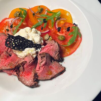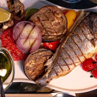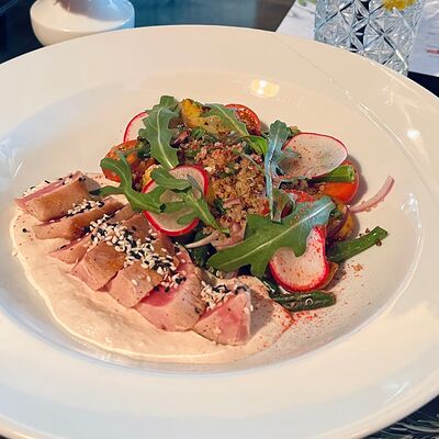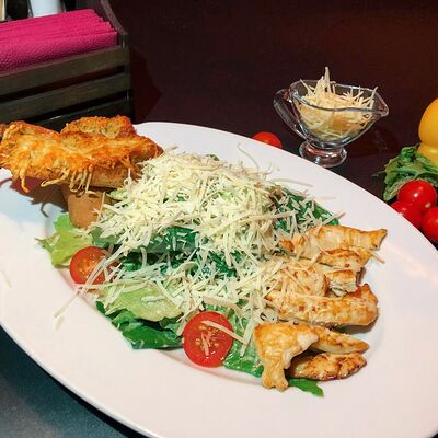 Салат из печеных овощей с соусом дзадзики доставка