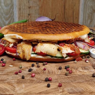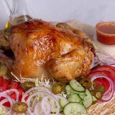 Капуста, помидоры, огурцы, лук, курица, соус томатный, соус чесночный