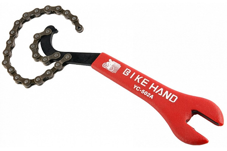 Съемник трещотки BIKE HAND YC-502A с "хлыстом" и с ключом на 15/16мм. Необходим при снятии и фиксации кассеты или трещотки. Материал - обрезиненная сталь.